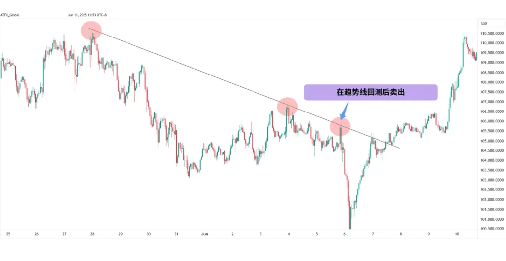 图 1:下降趋势显示出在卖出机会之前重新测试趋势线