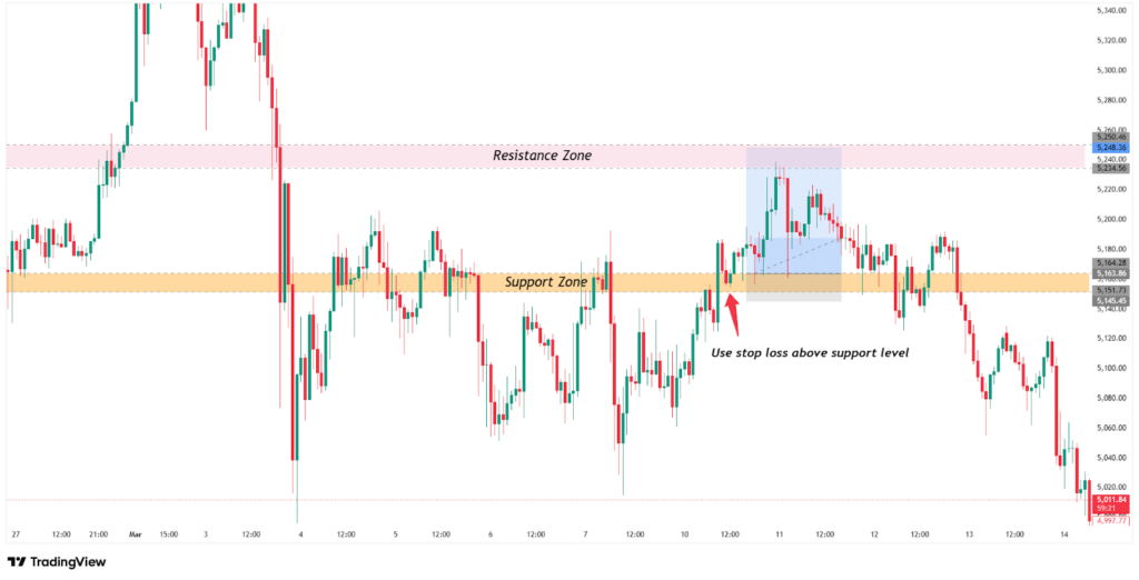 • 在關鍵支撐位/阻力位下方或上方設置止損單。